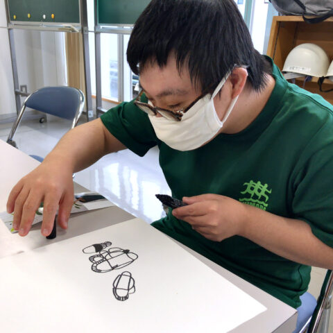 描き出したら、びっくりするような表現に釘付けになります。思いを込めて描いた自転車は、実際にはない部品が次々に組み足され、未来を駆け抜ける韋駄天バイクに大変身。観る側の想像力を掻き立てる作品もいくつもあります。彼はとっても明るい性格の持ち主です。