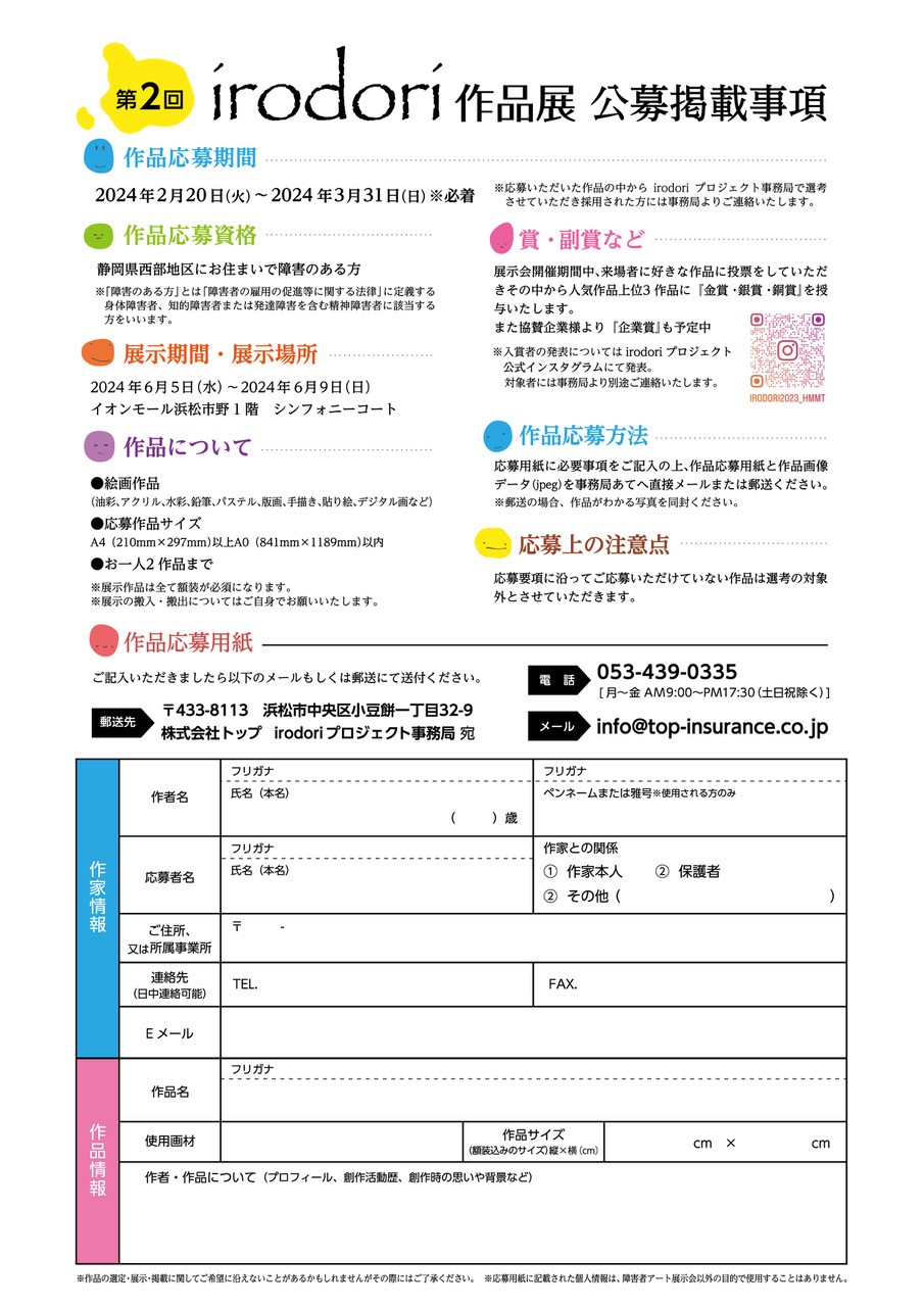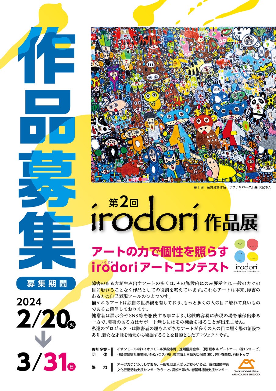 浜松市内で展示会を開催しているirodoriプロジェクトより、作品募集のお知らせです。