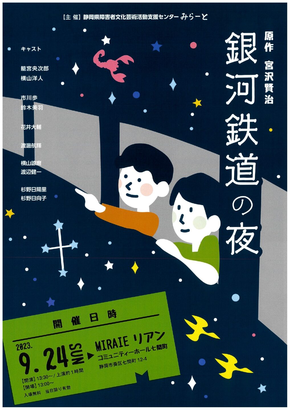 今回は宮沢賢治原作「銀河鉄道の夜」を上演します。出演者たちは今、稽古に一生懸命取り組んでいます。ぜひ、見に来てください。
