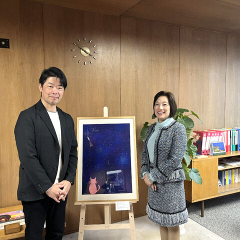 E.TSS株式会社さまのまちじゅうアートの作品入れ替えを行いました! 今回の作品は、西尾亜加梨さんの「月へ還る」で…