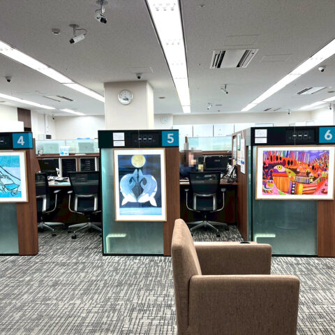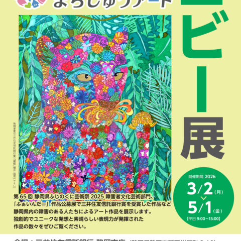 ふじのくに芸術祭2025 障害者文化芸術部門「ふぁいんだー」作品公募展で三井住友信託銀行賞(後継者賞)を受賞した作品や、職員の皆様オススメの作品の複製画を展示しています。