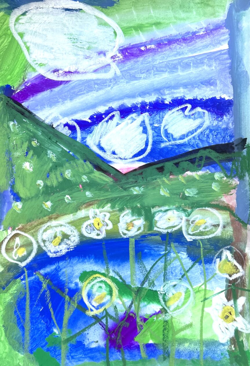 水仙まつりで訪れた時の風景を思い出しながら描きました。