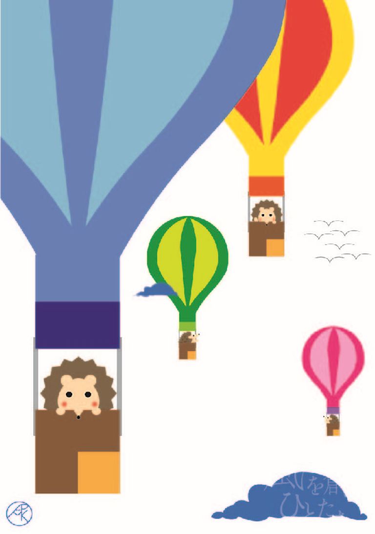 気球を描いてみました。そしたら、脳内でハリネズミが乗っている絵が思い浮か