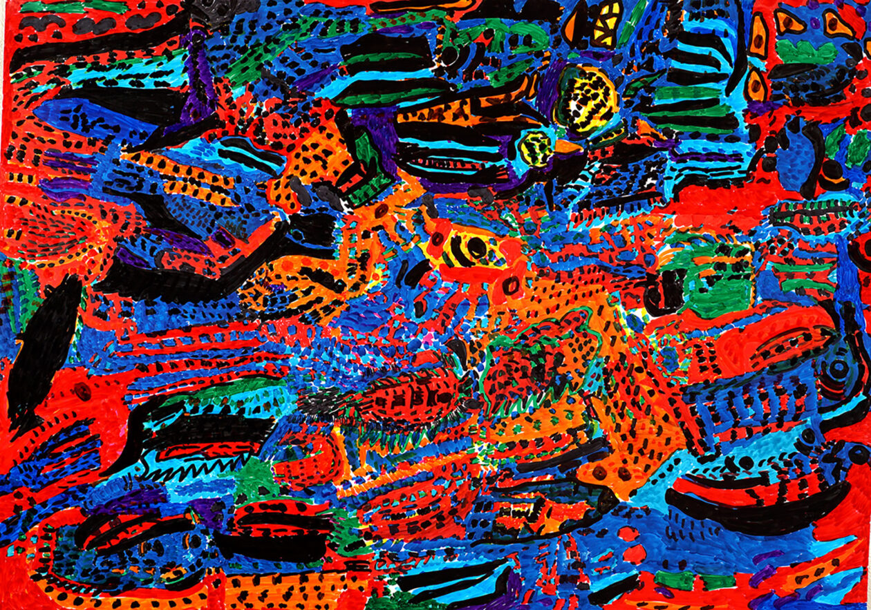 無題2 作品番号 00724 紙にマーカー・ペン B2/縦 (515×728mm) まちじゅうアート 参加作品 鈴木 文明 Fumiaki Suzuki 作家詳細 著作者の許諾を得て掲載しています。画像等の複製・無断掲載を禁じます。 鈴木 文明の作品 ふぁいんだー美術館