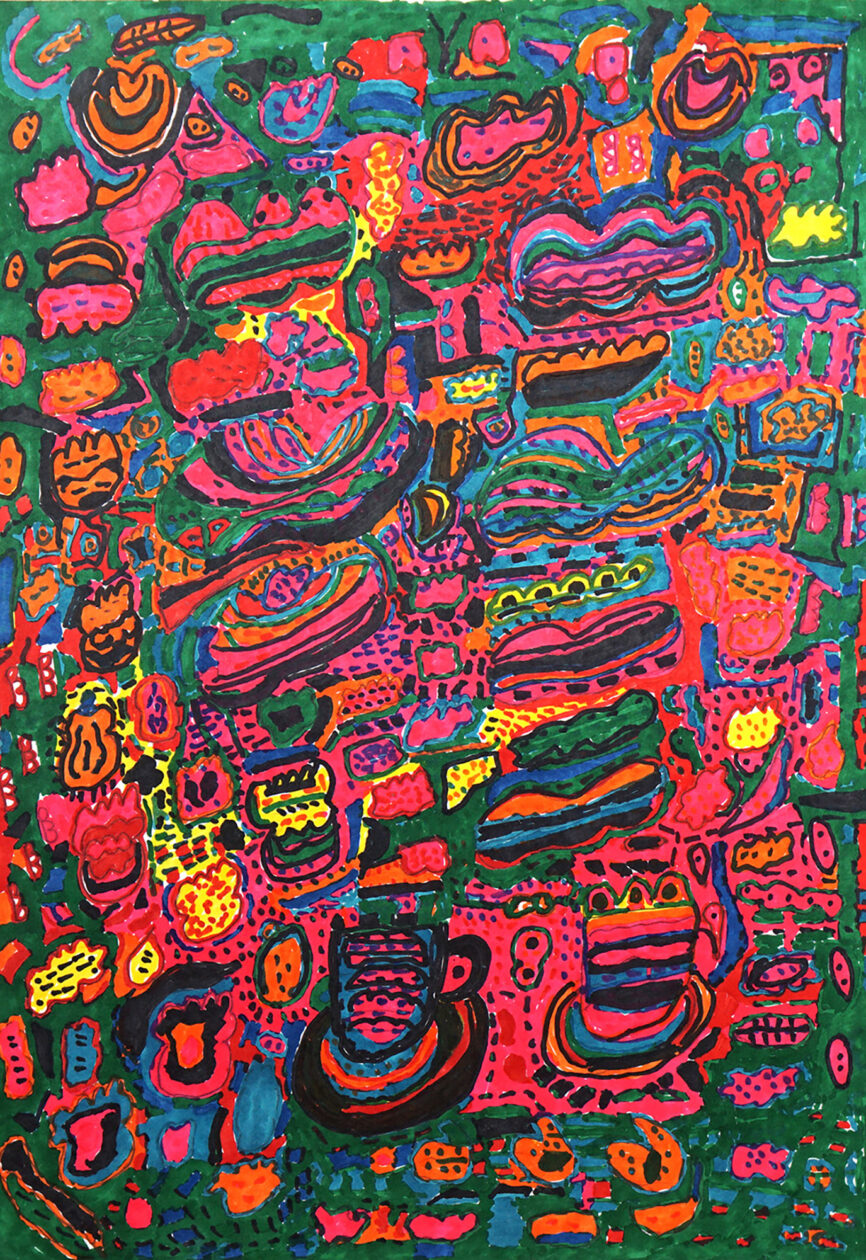 無題11 作品番号 00733 紙にマーカー・ペン B3/横 (515×364mm) まちじゅうアート 参加作品 鈴木 文明 Fumiaki Suzuki 作家詳細 著作者の許諾を得て掲載しています。画像等の複製・無断掲載を禁じます。 鈴木 文明の作品 ふぁいんだー美術館
