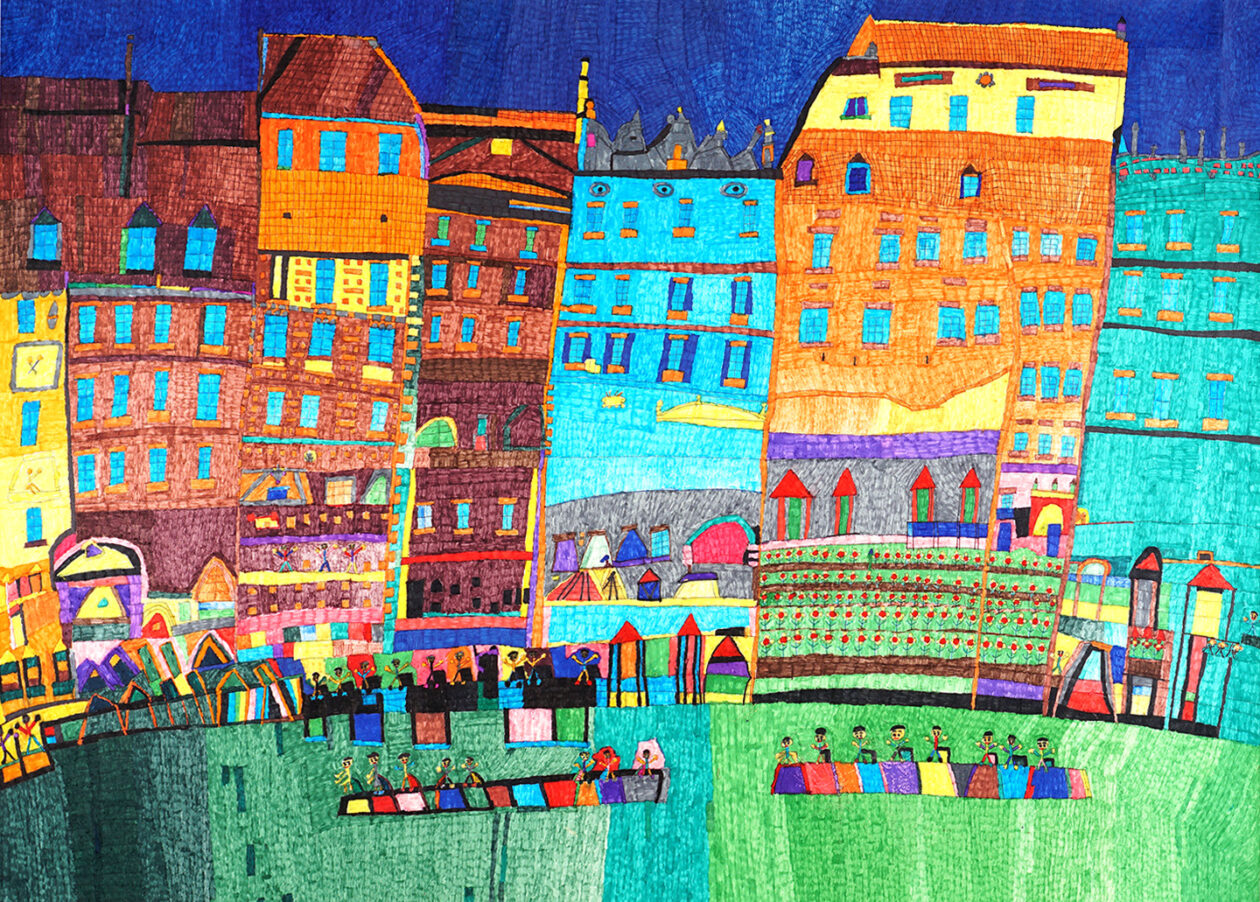 湖畔の町 作品番号 01002 紙にマーカー・ペン B1/横 (1,030×728mm) まちじゅうアート 参加作品 佐藤 和紀 Kazunori Sato 作家詳細 著作者の許諾を得て掲載しています。画像等の複製・無断掲載を禁じます。 佐藤 和紀の作品 ふぁいんだー美術館