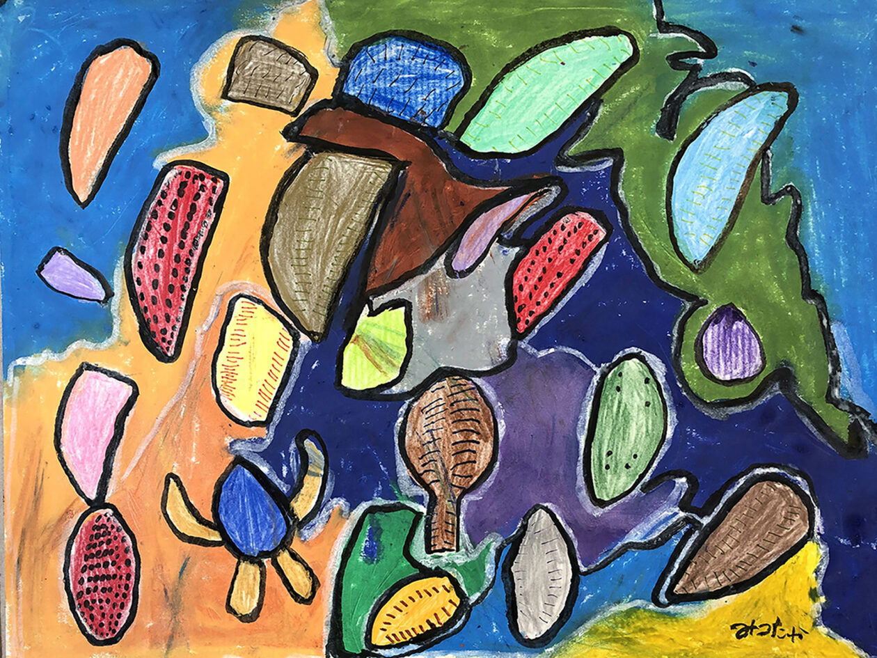 そのイメージは彼の頭の中だけにある。色彩や形などはその時の体調により変化し、出来上がった作品は想像を超え多くの発見を与えてくれる。