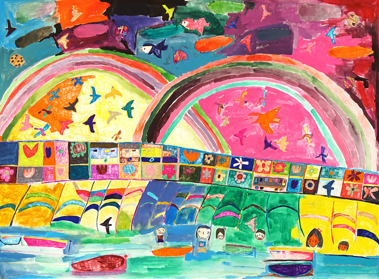 虹のある風景 作品番号 01850 紙にポスターカラー・ペン B1/横 (1,030×728mm) まちじゅうアート 参加作品 水野 恵美 Emi Mizuno 作家詳細 著作者の許諾を得て掲載しています。画像等の複製・無断掲載を禁じます。 水野 恵美の作品 ふぁいんだー美術館