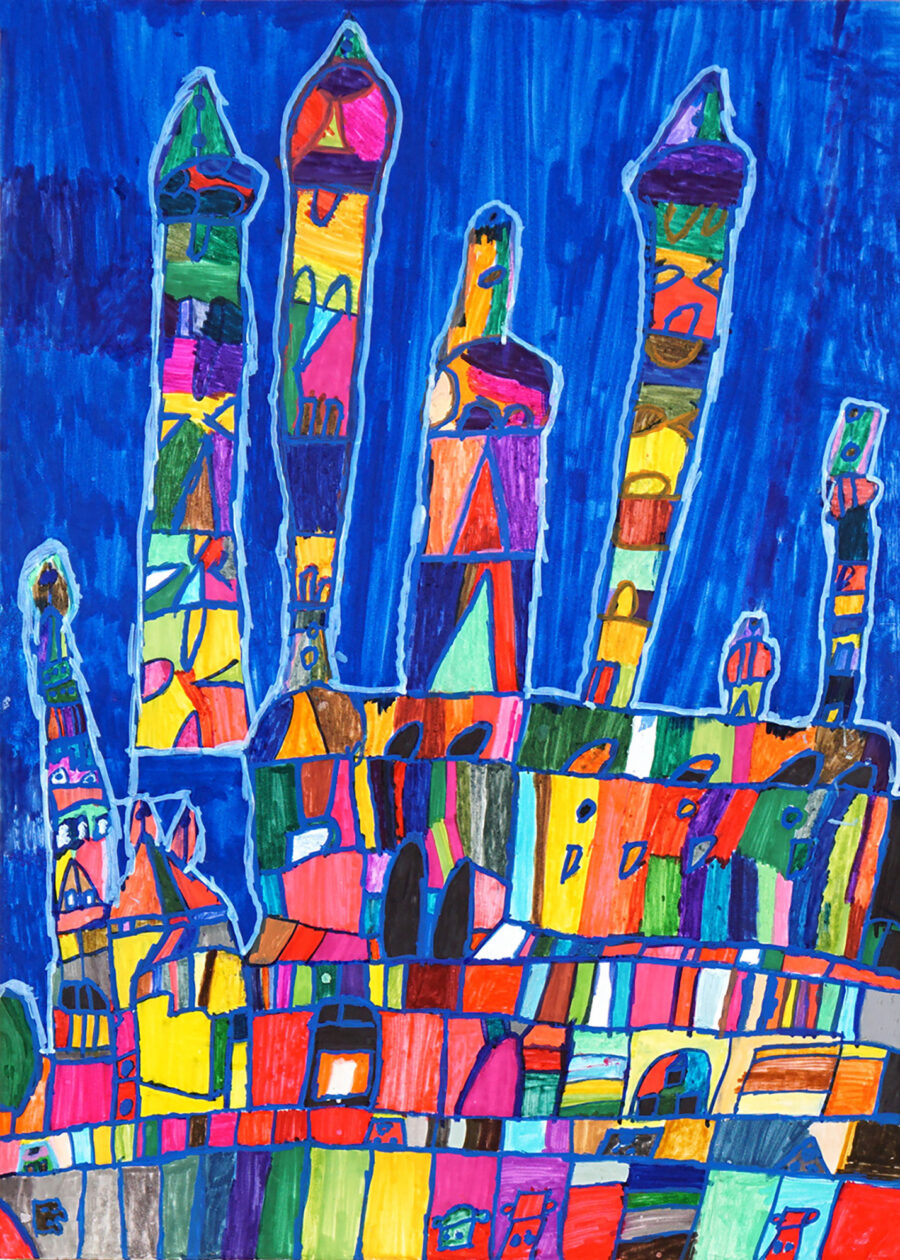 お城 作品番号 01871 紙にポスターカラー・ペン B3/縦 (364×515mm) まちじゅうアート 参加作品 大石 貴哉 Takaya Oishi 作家詳細 著作者の許諾を得て掲載しています。画像等の複製・無断掲載を禁じます。 大石 貴哉の作品 ふぁいんだー美術館