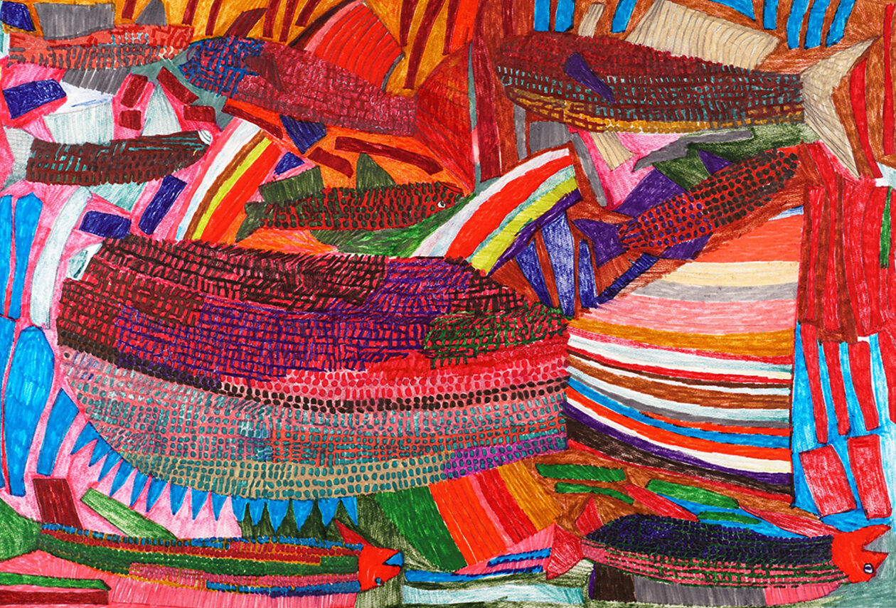 魚の群勢 作品番号 01892 紙にマーカー・ペン B2/横 (728×515mm) まちじゅうアート 参加作品 山崎 孝 Takashi Yamazaki 作家詳細 著作者の許諾を得て掲載しています。画像等の複製・無断掲載を禁じます。 山崎 孝 の作品 ふぁいんだー美術館
