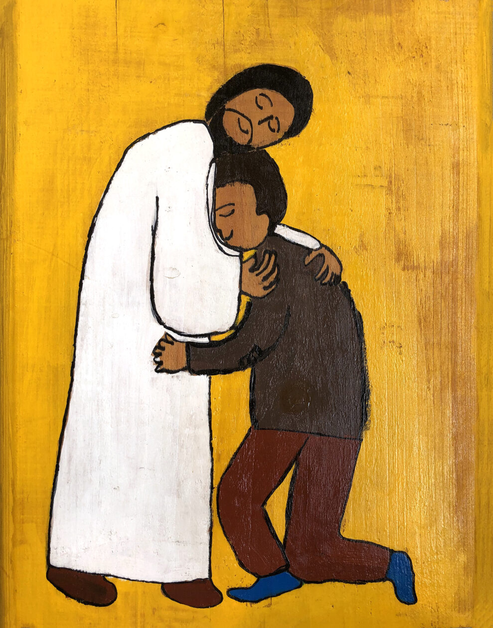 放蕩息子がお父さんのところに戻ってきて「お父さん、ゆるしてください」と言い、