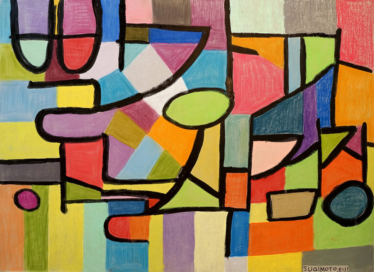 紙に墨汁・オイルパステル A2/横 (594×420mm)